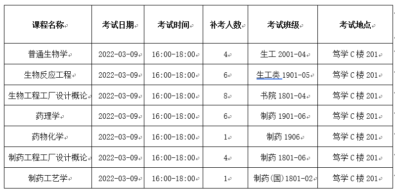 2021-2022学年第2学期best365官网自排补(缓)考安排
