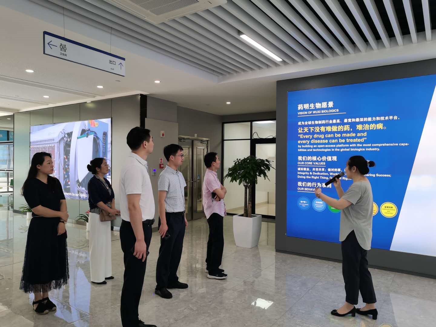 为进一步深化产教融合,拓展就业市场, 8月5日上午,生工公司党委副书记吴杰、副经理贾红华、经理助理于志杰率队赴无锡药明生物技术股份有限公司进行学习调研,公司全体辅导员、教学秘书、研究生秘书参加调研活动。