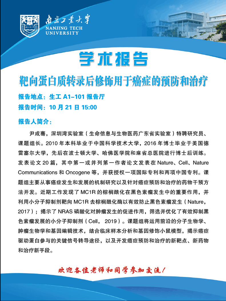 尹成骞:靶向蛋白质转录后修饰用于癌症的预防和治疗
